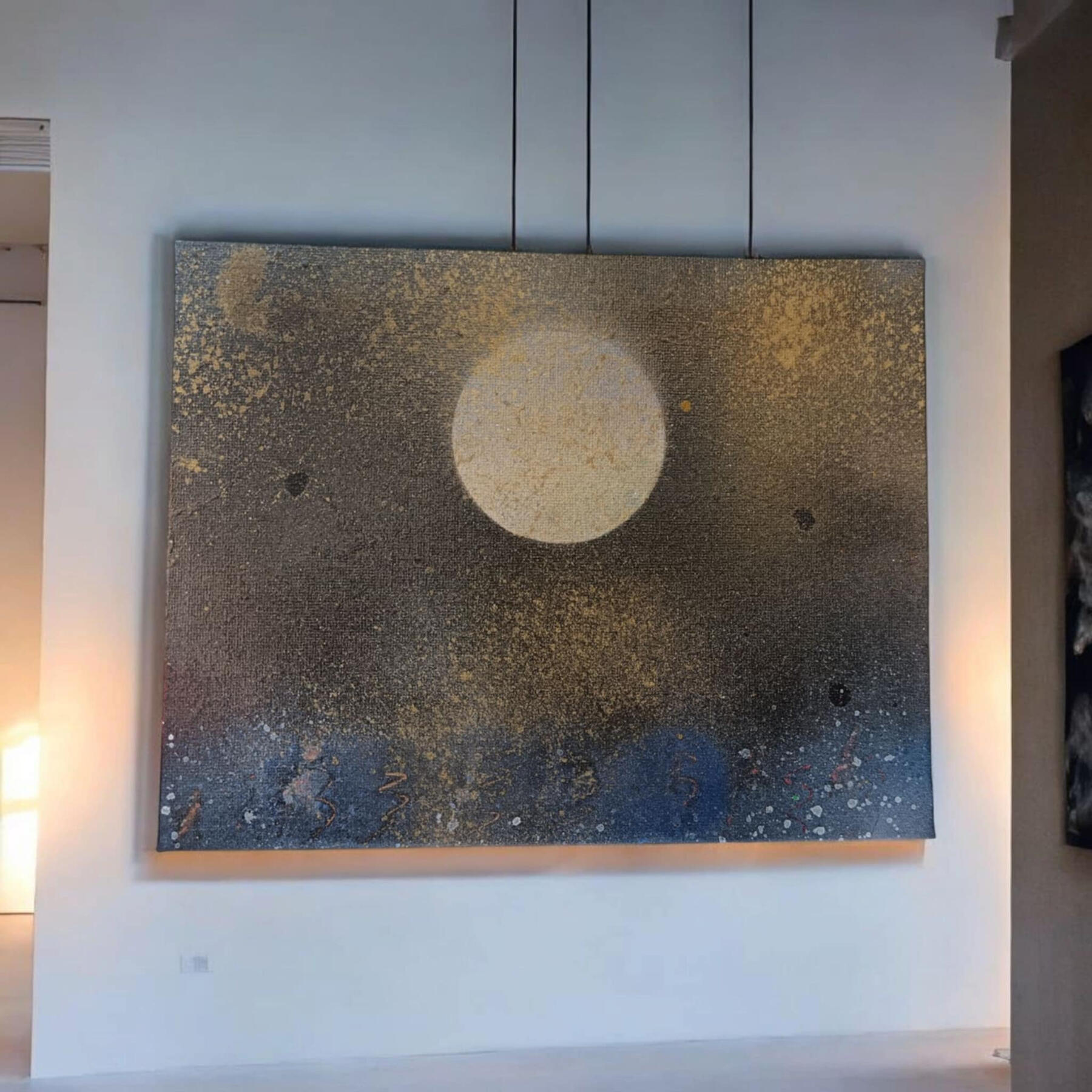 Mixed media on canvas (unknown origin)The work resists narrative. A single sphere — incomplete, or simply unconcerned with completion — anchors a field of particulate motion. Is this moon? Is this silence? Marrow never clarifies.The title alludes to a metric that’s never explained. Some viewers have suggested solar imagery; others, an explosion mid-gesture. The artist neither confirms nor denies.