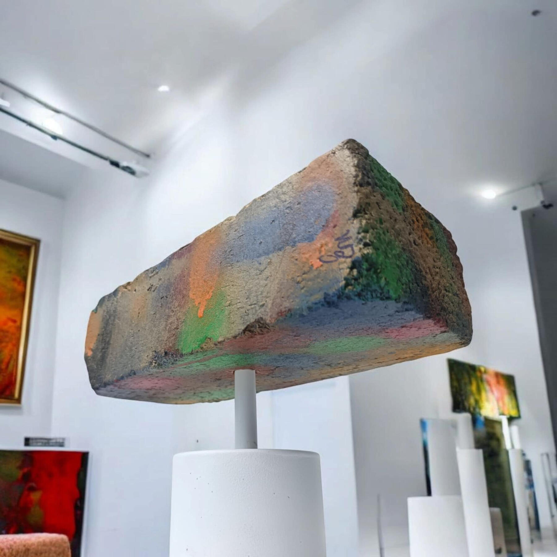 Unit #6 interrogates the aesthetic burden of functional material. In isolating a single reclaimed brick and elevating it on a fabricated steel plinth, Marrow draws attention to the architectural afterthoughts that quite literally uphold society — yet remain unacknowledged, invisible, and devalued.The work explores mass as metaphor, reframing the object’s load-bearing past as a symbol of cultural weight, institutional fatigue, and the performative labour of the working class. The glossy coating forces a confrontation with surface: preservation or suffocation?In its stillness, Unit #6 dares the viewer to ask: what are we really building, and for whom?Seen at:Galerie Eisenhaut, Hamburg, Germany