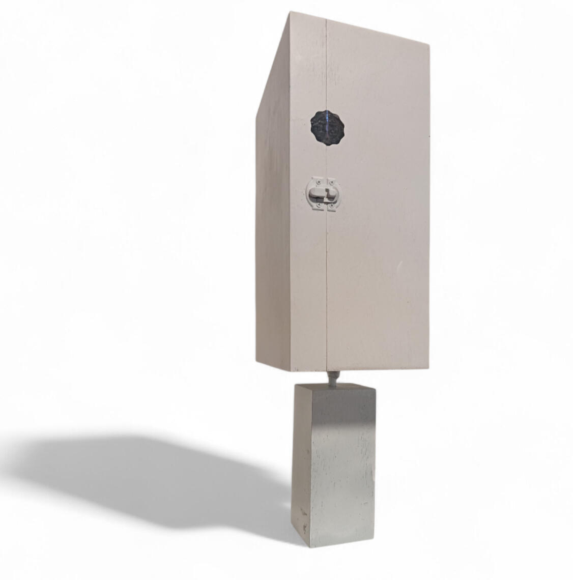 familiar form is presented in altered condition. The object appears stabilised, yet its function is no longer intact. Fragmentation is contained at the base, while the central structure remains elevated.The work does not resolve the transition it documents. It remains suspended between use and display.