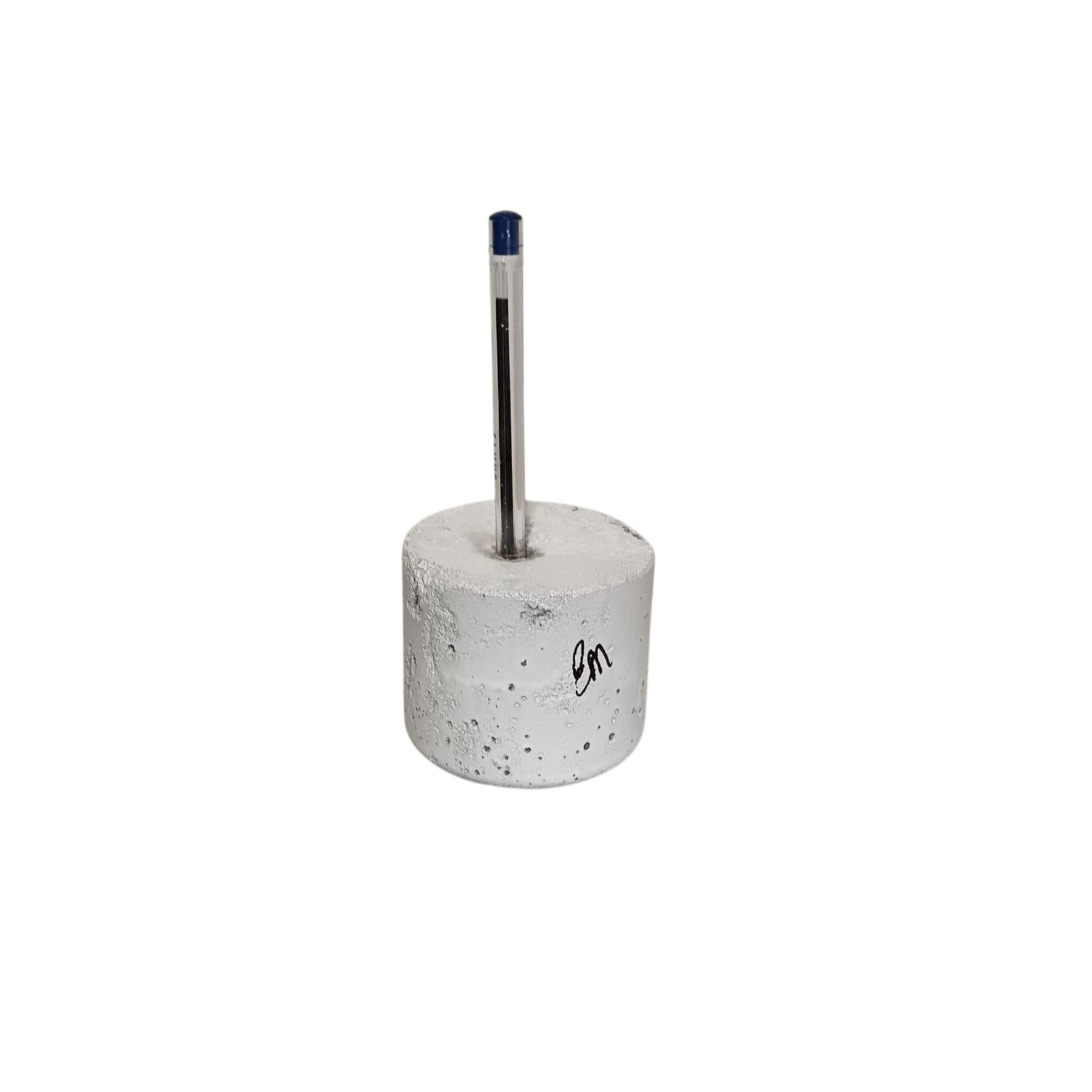 Unit 15 is a physical work consisting of a poured concrete cylinder embedded with a single pen. The object is accompanied by a formal typed letter addressed to the Consignments Department of 2 major auction houses although 3 have been made. The letter functions as both an inquiry and an autonomous component of the artwork, establishing an unresolvable friction between institutional protocol, authorship, and the circulation of contemporary works.The piece is intentionally concise: a utilitarian casting, a tool, and a document.